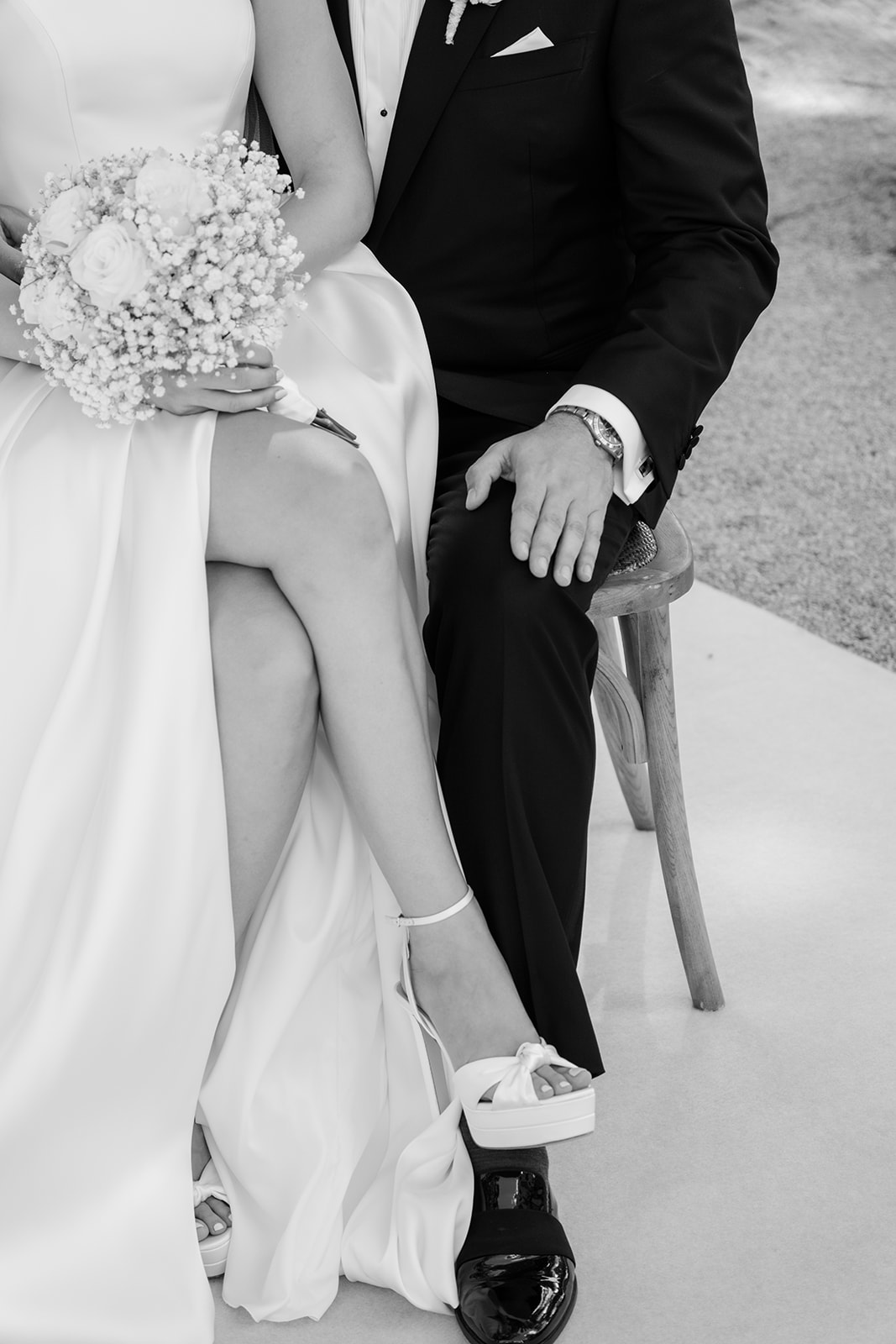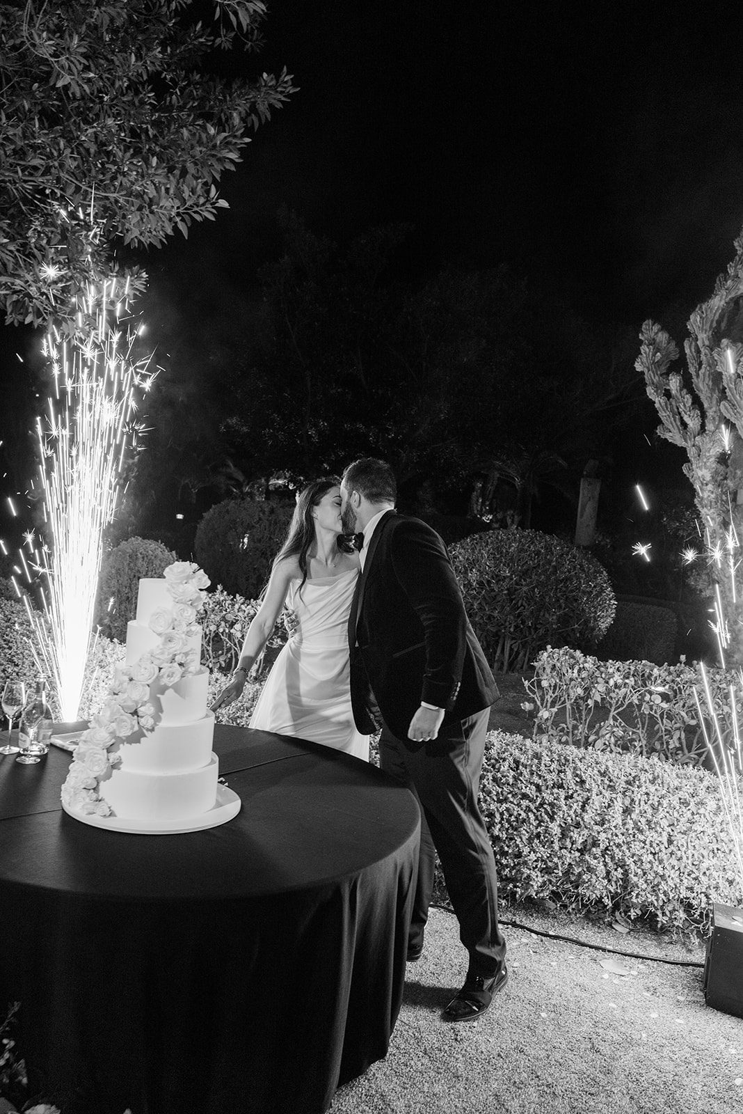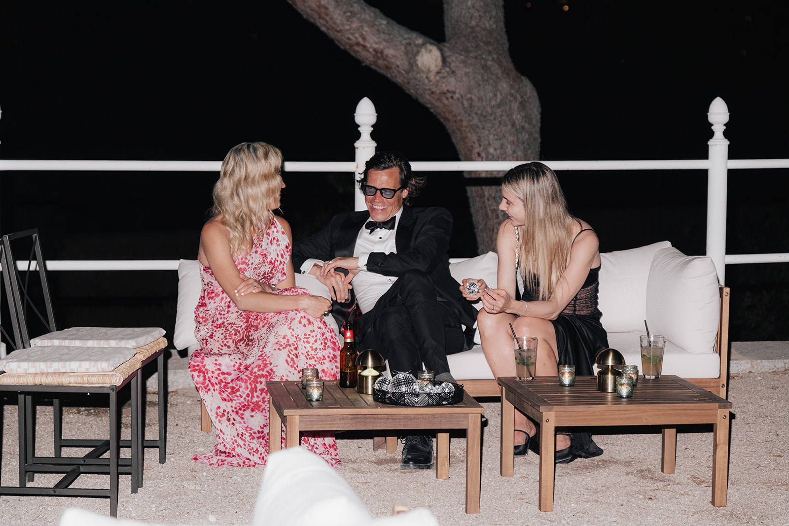 After dinner, the wedding cake was cut, surrounded by bright fountains in the background. It was a moment that perfectly captured the mood. Immediately afterwards, they began their spontaneous first dance, which quickly turned into an open dance floor. Later, the party moved to the greenhouse of Bendinat Castle – ideal for live music and lively dancing.