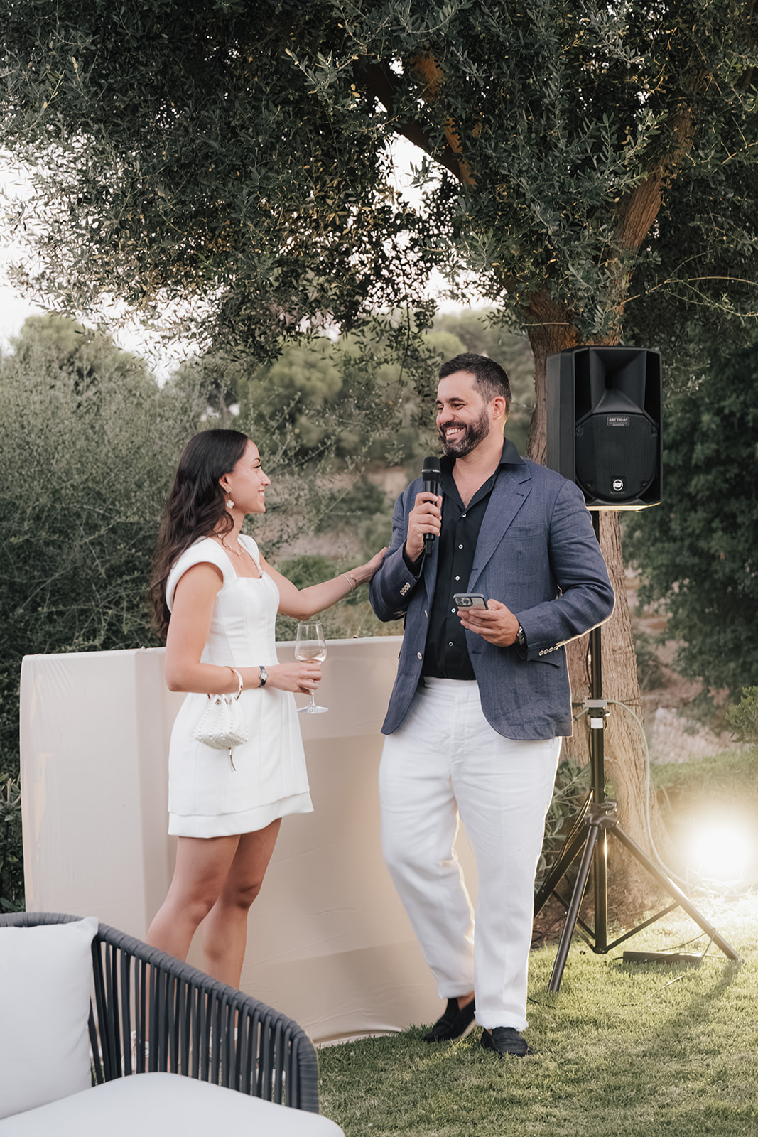 The dinner took place outdoors under one of the old Australian trees at Bendinat Castle, trees that have been around as long as the castle itself. Gloria and Brendan returned to their guests in new outfits and were greeted with loud applause. Before the meal, the fathers and the couple themselves gave speeches in English and Spanish. They talked about how they met, their lives and the significance of their union. Gloria and Brendan then thanked their families for their support during the planning.